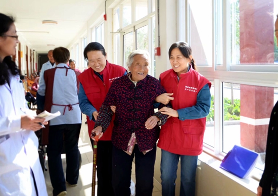 “付珍愛心媽媽團隊”重陽節走進敬老院(右一付珍)