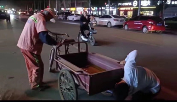 2020年10月7日晚19:00左右,崔德祥到臺(tái)兒莊區(qū)箭道路探訪朋友,看到一位70多歲的環(huán)衛(wèi)工在街頭推著一輛三輪車慢慢行走,原來老人的車鏈子掉了下來,身體的原因又彎不下腰來安裝,導(dǎo)致沒法騎行,只好推著回家。熱心的崔德祥趕緊叫住老人,主動(dòng)彎下身子,趴在低矮的車廂下,將三輪車的鏈子安裝好。雖然自己沾了兩手的油污,但他絲毫沒有在意。老人對(duì)此很是感激,連聲致謝,說如果推著車子回家的話,還不知道幾點(diǎn)能到家,幸虧遇到了好心的小伙子。崔德祥的朋友看到這一幕后,悄悄地用手機(jī)拍了視頻發(fā)到網(wǎng)上,引起很多網(wǎng)友的關(guān)注和好評(píng)。