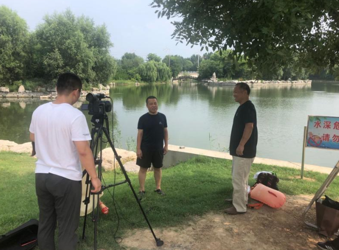 危急關(guān)頭,劉慶高第一反應(yīng)就是救人。他臨危不亂,一邊大聲呼救,一邊奮力施救。河西岸的王義成聽(tīng)到劉慶高呼喊之后,就抓緊找了個(gè)“跟屁蟲”(安全氣囊),順著橡膠壩堤西邊跑過(guò)去,把“跟屁蟲”扔過(guò)去。緊跟著王義成又轉(zhuǎn)到北岸以后跳入水中,和劉慶高一起施救。