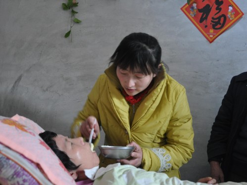 她沒(méi)有多想,現(xiàn)實(shí)也不給她機(jī)會(huì)讓她多想。在她深情呼喚了18天后,母親奇跡般的醒來(lái)了!那段時(shí)間,她每天早起騎車到醫(yī)院,白天上班,下午下班再到醫(yī)院去照顧母親,晚上還要帶孩子,平均一天只睡四個(gè)小時(shí)的覺(jué)。一年來(lái),為了讓母親得到更好的治療,她輾轉(zhuǎn)為母親轉(zhuǎn)了四五次院,吸痰、扣背、翻身、按摩、洗尿布、排大便,每一項(xiàng)護(hù)理她都不厭其煩;自制八寶營(yíng)養(yǎng)餐、煲湯、挑魚刺、炸水果汁,每一頓飯她都要精挑細(xì)選精心制作。