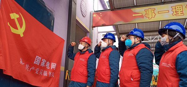 2020年1月31日徐學峰帶領黨員服務隊員在臨時防疫辦公房供電施工處現場宣誓