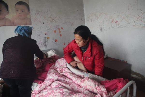 他每天兩小時(shí)一翻身,夏天還好,冬天起來給他翻身懂得再躺下根本睡不著,農(nóng)忙的時(shí)候又要忙地里的活,又得照顧他根本受不了。晚上燈一直開著,不知道壞了多少燈泡,第一次壞的時(shí)候不知道以為是線路,以前都是他換我從來沒有干過這事,叫哥哥過來看了看是燈泡壞了,當(dāng)時(shí)我在他床前大哭了一場(chǎng),一個(gè)小小的燈泡我都不懂。現(xiàn)在以前沒有干過的活都?jí)涸谖业纳砩希⒆印⒗先说纳钜搽S著一落千丈,生活的艱辛,精神的壓力,讓我產(chǎn)生過輕生的念頭,感覺活著對(duì)我來說一點(diǎn)意義都沒有了,沒有他的照顧,沒有依靠,沒有未來。因?yàn)殚_車撞他的司機(jī)車是借的,無證駕駛,他還是一個(gè)刑釋不到一個(gè)月、無父無母的人,車無任何保險(xiǎn),我們沒有得到一分錢的賠付,所有的花銷都?jí)涸谖覀兊纳砩稀?