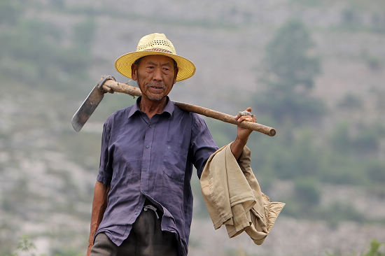 路修好了,還得經常養護。只要不下雨,他都會扛著锨鎬上山,養護道路。現在還堅持每周去查看山路,每年夏天用鐮刀砍掉山路兩側的野草荊棘,還在路兩側打了農藥。除此之外還得把路面上的雜草用鋤頭清除,石塊用鐵锨鋤到路邊,山洪沖得變形的土階用鎬刨出臺階。有一些外地來的市民爬山時辨不清方向,尤其是草木茂盛的季節。馬道沁總會不厭其煩地給他們指路,有時他還會親自帶游客攀爬到胡山山頂。