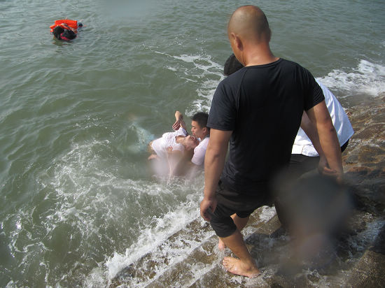 但是他又下水了——“我看到海面上還有落水者的戶外背包還在海面上,代培旭又第三次下水把包撈起來!弊詈,代培旭把包放到隨即趕來的救生船上,這才上了岸。經(jīng)搶救,兩名落水者安然無恙。