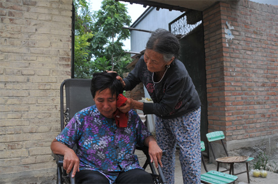 “兒媳婦能早一天好起來,我走了也心安!”9月22日,李孔氏一邊為兒媳婦扇著扇子,一邊用扇子驅(qū)趕著幾只嗡嗡叫的蠅子。