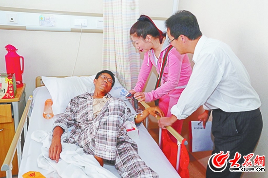 近日,金天德師傅見義勇為身受重傷的事跡經媒體報道后,引發了廣大島城市民的強烈關注。16日,市北區委政法委副書記、市北區見義勇為協會秘書長劉國穎一行人來到海慈醫院,看望慰問金天德。“知道他的事情后,我們區里高度重視,經過申請,市北區社會管理綜合治理委員會已會同市北區見義勇為協會聯合下發文件,授予金天德‘市北區見義勇為先進分子’榮譽稱號,并向市綜治委推薦其為市級見義勇為先進分子。這是2013年6月我們成立‘市北區見義勇為協會’以來表彰的第一位先進分子。”劉國穎在詢問了金天德的病情及身體恢復情況后,為他送上了慰問金15000元。