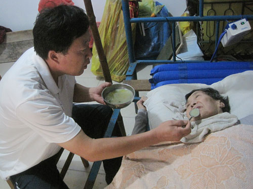 由于長年臥床不起,患側肢體血流不暢,大多數患者會出現褥瘡、關節黏連等各種并發癥,為了不讓母親有并發癥,孫立民同志每兩天便給她擦洗一次身體,稍有點空就給她作按摩,常常半夜三更起來幫老人按摩翻身。母親不能自己吃飯他就一口一口的喂飯給母親吃。母親行動不便不能到理發店理發,他就買來理發工具自己幫母親理發,給母親泡腳、洗澡、修指甲精心照顧。大便不通他就忍著惡臭用手指將大便一點一點摳出來,日復一日,年復一年,他從來沒有半句怨言。為了豐富母親的生活,他經常給母親讀報講故事讓母親緩解痛苦,還請來街坊鄰居來家里與母親嘮嗑解悶。只要能想到的辦法孫立民總是想盡辦法讓母親高興。