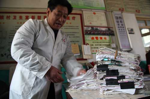 1977年,劉慶民便任職山村民辦中學教師,但周邊幾個村卻沒有一個醫生,鄉鄰們每每得了病,不是用架子抬著去縣里醫治,就是熬著等死。“好幾次,村里的孕婦難產,在送往鎮上醫院的過程中就死了。”這對劉慶民的打擊很大。面對連綿的大山,山里人就沒有活下去的命么?他毅然辭去教師工作,跑到周邊羅家灣村、龍運港村學醫。就這樣,1979年,20歲的劉慶民在山村里開辦了第一家診所,之后又給孩子們接種疫苗。在這之后,劉慶民又不斷參加鎮里、縣里的鄉醫培訓班,為的就是更好為村民看病。有錢沒錢都給看,是劉慶民的原則,幾年下來他積攢了9萬多元的欠條,這些欠條金額大些的有600多元,小的則是幾塊錢,有的單子已經發黃,最早的能追溯到上世紀七、八十年代。“我留著這些單子,沒有任何要賬的意思,而是告誡子孫們不管有沒有錢,都要給病人看病。”劉慶民堅定地說,“做人,首先要對得起自己的良心,其次是對得起自己的職業。我的工作就是救人,而不是賺錢。當遇到沒錢看病的人,我們不能說不給人家看病,反而要堅持給人家看下去。”