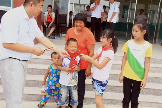 一次偶然的機會,王大江走進了臨朐山區(qū),在臨朐縣冶源鎮(zhèn)米山小學,當看到孩子們上課的教室時,簡陋的學習環(huán)境深深觸動了他。經(jīng)過核實了解到2012年鎮(zhèn)里計劃籌建教學樓的事情,免費提供給他們價值20萬余元的瓷磚,無常捐贈學校所需的所有風扇。在他的帶領下,20多個企業(yè)家也來到了冶源鎮(zhèn)米山小學,大家一齊捐助了這里的157名孩子。