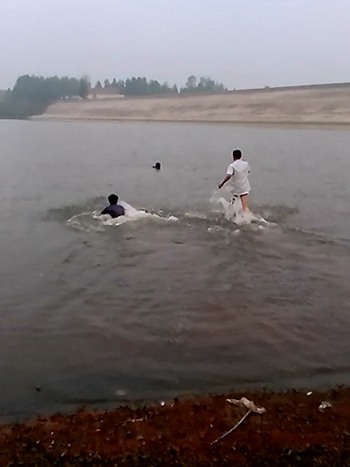 2014年6月27日,星期五。山東省日照市莒縣國土資源局職工牛慶龍同志因母親病故,正悲痛地和親朋一起在山東省日照市莒縣小店鎮窩疃村家中舉辦喪禮。這時,忽然聽到村前傳來:“救命啊,救命啊”的急促呼救聲。按照山東省的地方民間習俗,孝子在舉辦喪禮時,決不能亂動,必須跪在靈前。救人要緊,這個念頭在腦中一閃而過后,牛慶龍強忍心中悲痛,顧不得脫去身上的重孝服,一個箭步從家中跑出來,來到村前窩疃水庫一看,水庫岸上有一圈人。由于這個水庫太深了,有近二十米深,圍觀的人都被嚇得不知所措。當時,水面上只有一團黑色的長頭發在上下翻動,沒有人敢于下水施救。在這情勢危急、性命攸關的時刻,顧不得多想,牛慶龍一個猛子扎到水里,奮力向落水者游去,可是被救人求生的欲望非常強烈,死死地攥住牛慶龍的胳膊不放,使牛慶龍無法游泳。經過數十分鐘的努力,牛慶龍終于將落水者安全救到岸上。落水者名叫翟文華,是莒縣小店鎮呂家崮西村,這次在探親的途中,不慎落水。經過緊張的人工呼吸等施救,被救者終于恢復了呼吸,并恢復了神智。而這時,牛慶龍卻悄悄地離開了,回到家一看,時間已經是晚上9:00多了。當時天降大雨,水庫的水又非常涼,當回到家時,牛慶龍同志自己卻由于精疲力竭、嚴重受凍差點昏了過去。事后,落水者的家人萬分感謝并留下禮品。牛慶龍同志在窩疃村委會的幫助下,看望了落水者,退還了禮品,一再說明:這是我們應該做的,換誰都會這樣做,不用謝我們。6月28日,落水者家長將“重生厚德”的錦旗和感謝信送到我局表示感激之情,《日照日報》、《莒州通訊》和莒縣電視臺等多家新聞媒體聞訊后紛紛來莒縣局作了采訪報道,引起強烈的社會影響。