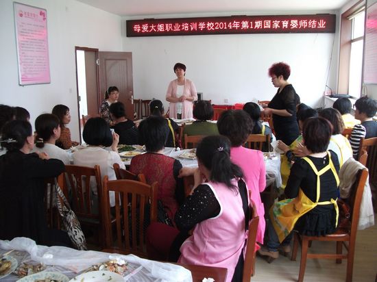 隨著公司業(yè)務的進一步拓展,叢素娟又發(fā)現(xiàn)一個新問題,由于缺少正規(guī)的培訓,我市的家政服務人員專業(yè)素質(zhì)普遍偏低,不能很好地滿足家庭的需要。于是她又萌生了一個新的想法:對員工進行養(yǎng)老育嬰、營養(yǎng)配餐等方面的專業(yè)培訓,提高員工技術水平和專業(yè)素養(yǎng)。2011年,她成立了母愛大姐職業(yè)培訓學校,設立了針對兒童的感統(tǒng)訓練室、親子活動園,并建設了可同時容納80多人的培訓室,用于對員工、幼兒家長進行培訓。事實證明,叢素娟的這一決斷是非常正確的,員工經(jīng)過培訓后,綜合素質(zhì)大大提高,贏得了用戶家庭的好評,在社會上也引起良好反響。2012年,叢素娟又投資80多萬元成立了包括母嬰養(yǎng)育中心、孕嬰用品超市等在內(nèi)的母愛大姐家政服務中心,業(yè)務范圍也擴大到月子護理、育嬰保育、衛(wèi)生保潔、居家護理、家電清洗、保健按摩、心理咨詢、涉外家政等20余個項目,成為了乳山最大的綜合性家政服務機構。