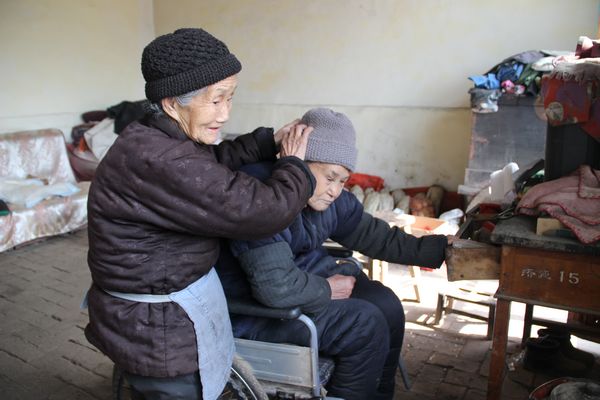 兒媳婦大小便不能自理,晚上經常尿床,由于經濟拮據,買不起尿不濕,高丕英就用一些舊衣服給兒媳做了幾十塊尿布。擔心兒媳晚上尿濕了不舒服,她每晚都要起來兩次幫兒媳更換尿布,第二天還要親自洗了晾曬。兒媳婦坐在輪椅上一呆就是一天,高丕英也想出去走走,但善良的她怕兒媳寂寞,一直守在她身邊。這些年來,高丕英幾乎沒有出過家門,只有逢年過節家里人打工的都回來了,才抽出一點時間到村頭上轉轉。天氣好的時候,高丕英還會推著兒媳到院里曬曬太陽。在她的精心照料下,兒媳的精神狀況一直很好。"這些年多虧了俺娘啊,凈是她照顧俺,給俺打支應啊,俺娘好啊,俺娘好人啊,要不是她這樣待俺,還不知道俺現在能活成啥樣呢……"兒媳婦含著淚說,從這些話里,我們也能感受到,兒媳婦對這個婆婆的感情有多深,有多真摯。