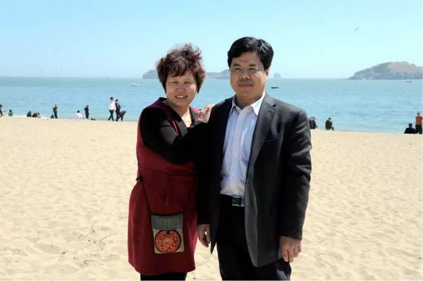 王春華與妻子在海邊