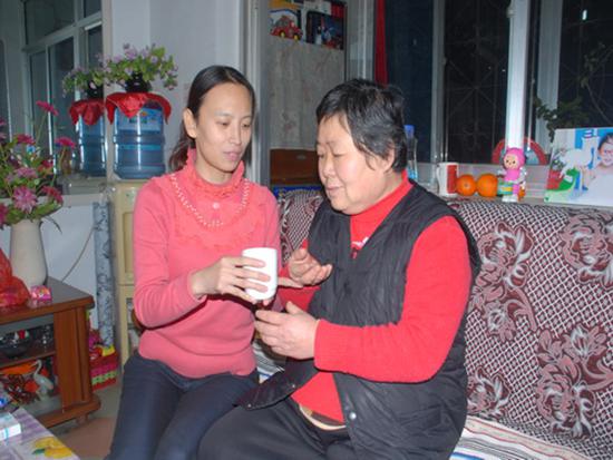 隨著孩子慢慢長大,王志會覺得輕松了許多,但是生活的磨難又一次開始考驗她。婆婆在2013年春節(jié)前查出了子宮內(nèi)膜癌需要立即手術(shù),一夜未眠的她第二天含著眼淚,向老人隱瞞著病情立即到人民醫(yī)院辦理了入院手續(xù)。丈夫在醫(yī)院時,王志會就在家里照顧公公。她上班前將飯?zhí)崆白龊昧耍鹊匠燥埖臅r間讓鄰居熱熱盛上端到老人跟前,因為怕上班后老人無法移動至廁所,就買了座椅式的方便器放在臥室里,等她下班后在清理。能想到的細(xì)節(jié)她都想到,不讓老人受一點兒委屈。