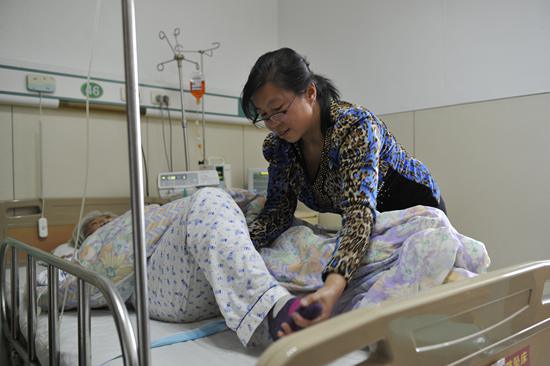 2009,王莉的父親因多發(fā)性功能衰竭住院,還沒有完全康復(fù)的王莉,毅然挑起了照顧父親的重?fù)?dān)。隨著父親多發(fā)性功能衰竭越來越重,老人患的阿爾茨海默病也日益加重到生活不能自理,經(jīng)常剛換完褲子,轉(zhuǎn)身又尿了。最多的一天,王莉?yàn)楦赣H洗了25條褲子。2014年,母親患胰腺癌,也住進(jìn)了醫(yī)院,常常因病異常疼痛。王莉就不斷地給母親按摩來減輕她的痛苦,其實(shí)她自己因?yàn)槭中g(shù)留下了后遺癥,每次用力胳膊都會(huì)疼痛難耐。最艱難的時(shí)候,王莉的父母同時(shí)住院,常常是左手邊照顧著父親,右手邊母親那又出現(xiàn)了新狀況。但是,每當(dāng)焉紹濤要去陪床時(shí),王莉都會(huì)說,“家里的事你不用多操心,我一個(gè)人能行。”一時(shí)間癌癥女兒照顧病重雙親的故事在乳山市人民醫(yī)院傳為佳話。