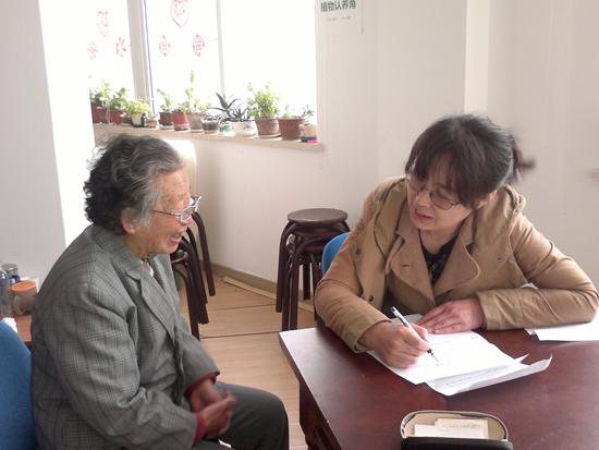 楊曉玲為空巢老人吳月英寫回憶錄(右一為楊曉玲)