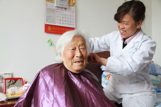 陪老人吃飯、聊天,幫行動不便的老人洗澡、換衣服,給老人理發、剪指甲、刮胡須,為生活不能自理的老人端屎端尿……來到福利中心的第一天,閆基艷就和護工一起,投入到為老人的服務中。