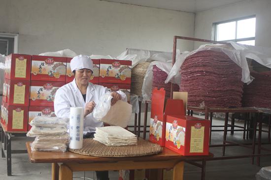 這時(shí)凌福葉覺著,本村的婦女勞動(dòng)力是有限的,于是她又發(fā)動(dòng)臨村婦女勞動(dòng)力在家加工,收貨、銷售,不但自己能掙錢,還能帶動(dòng)其他婦女利用農(nóng)閑季節(jié)創(chuàng)富。隨著加工量的增大,她發(fā)現(xiàn)地瓜淀粉的數(shù)量也很大,淀粉——地瓜的精華,在有經(jīng)驗(yàn)的老人們的指導(dǎo)下,又開始利用地瓜淀粉原生態(tài)的特點(diǎn),不用養(yǎng)漿,不加任何佐料,純手工制作粉皮,這樣做出來的地瓜粉皮有耐煮、勁道、順滑、口感好、色澤晶瑩透亮、味香甜美等特點(diǎn)。可以炒、燉、涼拌著吃。令她沒想的是,產(chǎn)品一出來就供不應(yīng)求,深受廣大客戶歡迎,由此她又多了一條新的加工項(xiàng)目,成功的喜悅更加堅(jiān)定了她創(chuàng)業(yè)的信心。于是在2014年10月我們成立了日照璞真工貿(mào)有限公司。利用這個(gè)地區(qū)紅薯貨源充足的優(yōu)勢(shì),開發(fā)更多的紅薯產(chǎn)品加工項(xiàng)目,例如紅薯饅頭、紅薯餡月餅等。2015年10月她又成功的招商了一位萊陽加工紅薯干、紅薯?xiàng)l的老板,此加工項(xiàng)目不僅解決了本村婦女農(nóng)閑季節(jié)就業(yè)問題,而且豐富了公司的產(chǎn)業(yè)項(xiàng)目。看到今天紅薯產(chǎn)業(yè)的蓬勃發(fā)展,從小吃紅薯長(zhǎng)大的凌福葉,堅(jiān)信紅薯產(chǎn)業(yè)必將圓我創(chuàng)業(yè)夢(mèng)。可令她遺憾的是,由于替朋友擔(dān)保,信譽(yù)度受損,不能再獲得銀行的支持,也不能享受國(guó)家一些創(chuàng)業(yè)扶持政策。加上2008年公公突發(fā)心臟病,做了一次心臟瓣膜置換手術(shù),2010年,父親患尿毒癥,2012年老公又在一次意外事故中受傷,造成肢體三級(jí)殘疾,使家庭債務(wù)更加繁重,近年來一直負(fù)債經(jīng)營(yíng),持續(xù)還債,用信譽(yù)支撐著事業(yè)步步前進(jìn)。資金的限制,使她沒有經(jīng)濟(jì)實(shí)力辦QS認(rèn)證,她的產(chǎn)品就不能走進(jìn)大中超市。