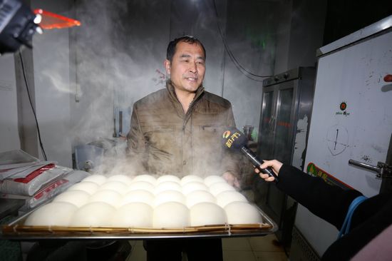 圖為饅頭大叔在接受湖南電視臺的采訪