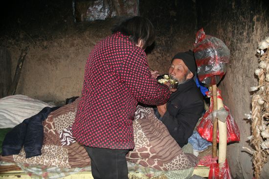 日子雖然窮點,但只要家人都健健康康的,李安玲就很知足,送走了婆婆,李安玲肩上的擔(dān)子本來可以暫時輕一點,但是上天好像偏偏要故意考驗李安玲的孝心。2004年8月初,公公吳之田去艾曲趕集的路上發(fā)生了車禍,住進了縣人民醫(yī)院。對于大字不識幾個的農(nóng)家婦女來說,單只是上樓下樓、叫醫(yī)生打針換藥、取單拿藥就夠讓人崩潰了,何況她自己的眼睛還看不太清楚。但是這一切李安玲沒有絲毫的抱怨,堅強地獨自承擔(dān)下來。2004年12月公公出院回到家后就臥床不起。上要照顧生活不能自理的公公,下要照顧年幼的孩子,還得照顧有精神病的丈夫,李安玲白天下地干農(nóng)活、黑天洗衣做飯,生活的重?fù)?dān)絲毫沒有壓垮李安玲,面對困難她變得更加堅強勇敢。