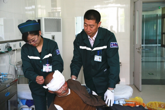 幾年前,一輛拉水的大車車禍導致駕駛室嚴重變形,駕駛員被擠,那天正是大雨、天黑,由于報警人沒有描述病人被卡,救護車到達現場后才發現自己沒有帶雨具。那是一個胸部閉合損傷液氣胸的病人,到達時病人已經嚴重憋氣意識恍惚,反復復述自己不行了不行了。高偉一邊不斷地鼓勵患者一邊和護士進行基本的搶救,吸氧、輸液、為患者進行胸部支撐,就這樣他們一手舉著吊瓶一手扶著患者在雨里站了40分鐘,直到消防車到來把患者解救出來護送到醫院,這時高偉二人早已渾身濕透,寒戰不止,而且回來才發現高偉自己胳膊在救助時不知怎么劃破了,需縫合兩針!可是這時還不能處理自己的傷情,這個病人到達醫院已經快要呼吸循環衰竭,高偉需要迅速和專科對病人進行進一步處理,好消息是這個病人在進行胸腔穿刺排氣引流等一系列處理后病情逐步穩定,他們硬生生把他從鬼門關拉了回來,并在接近一個月后順利出院。