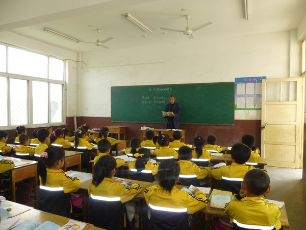 鄉村教師帶著老伴去上課