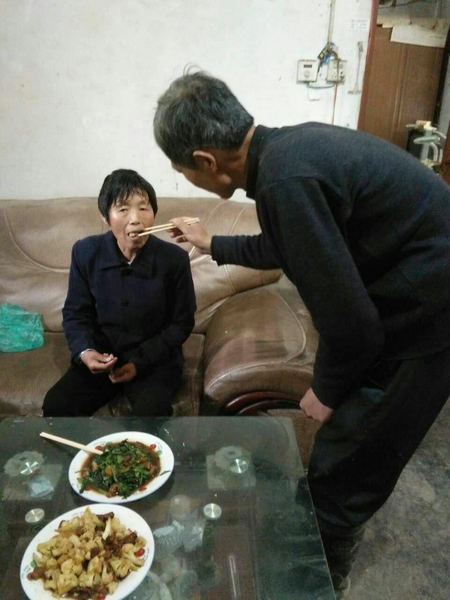 與丁德強共事30多年的劉鳳軍告訴記者,丁老師為了照顧妻子和母親十分辛苦,有時為了準時上班,早上連飯都顧不上吃,只能到學校用開水泡干糧。由于妻子吃飯、穿衣,甚至走路都需要人照顧,他上課的時候,同事們就自覺在辦公室照看她。丁老師的細心和耐心也令大家動容,“她現在完全離不開人,老丁幾乎每天喂藥的時候,都像哄小孩一樣,讓我們看了既心疼又佩服。”