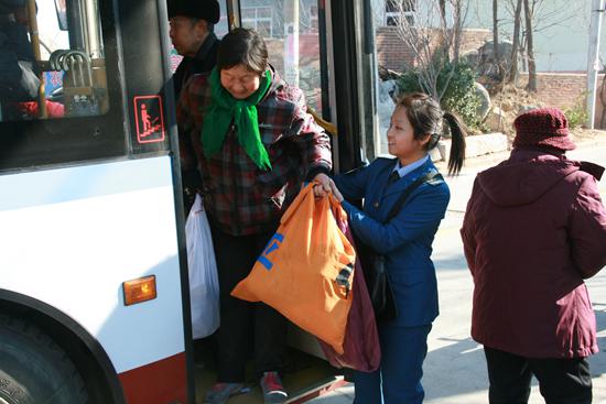 106路線單程54公里,共設(shè)74個站點,是連接嶗山仰口、埡口風(fēng)景區(qū)與市區(qū)的唯一一條公交線路,全程往返需要4個小時。山里的一些獨居老人出行不便,陳樂樂就把一個報箱改裝成了“郵遞箱”掛在車廂里,老人們可以把需要的物品列出清單,讓乘客幫忙投在箱子里,等下班后她會采辦好,第二天當行車到某個站點時,再把物品一件件交給他們。乘客們也常常托陳樂樂把一些物品捎給市區(qū)的親戚朋友,如享有盛譽的“王哥莊大饅頭”、“嶗山綠茶”等都是樂樂傳遞的“郵件”,為老人買藥、為孩子購書,代辦公交乘車卡等事兒成了她的“兼職”。