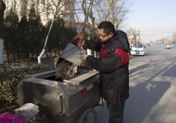 臟活累活面前,王立恒從不躲讓。2014年11月底,一場冷空氣過后,大范圍的落葉紛紛揚揚飄落下來,大街小巷鋪滿了厚厚一層。王立恒凌晨4點鐘起床,先把所有路段的落葉情況查看了一下,分配好人員和車輛后,便開始同保潔員們一起投入到清理落葉的戰斗中。保潔員在前面掃,他就在后面一袋一袋地幫著收集,就這樣帶領著保潔員連續奮戰了十幾個小時,收集清理落葉10余車。當他披著落日的余暉回到家時,已經累得精疲力竭,胳膊都抬不起來了。
