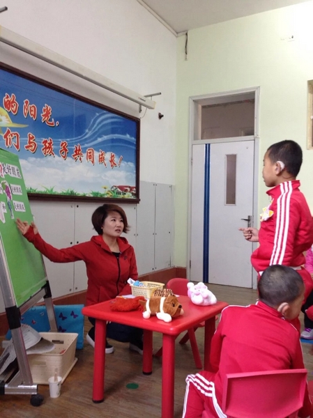 15年執著堅守,全心傾注特殊教育事業。15年來,她用真心對待孩子,用愛心溫暖孩子,用耐心教育孩子,幫助他們克服功能障礙、培養自理能力。為幫助聾啞兒童學發音,她教會一個簡單的音節往往需要上百次練習。學生聽不到,她就把自己的嘴唇貼近他們的手背,讓他們感受送氣音和不送氣音的區別、感知氣流的大小;學生聽不懂,她就把他們的手放在自己的臉龐、鼻孔和脖子上,讓他們通過感受聲音振動找準發音部位;學生說不準,她就引導他們用心揣摩每個構音的運動方式、每個句式的表達方法。她還無償承擔了幾名社區特殊孩子的個訓工作,每天擠出時間給他們進行個別化訓練,同時為患兒家長提供咨詢和指導,針對不同孩子詳細制定家庭康復計劃。在她的不懈努力下,很多聾啞孩子取得了顯著的康復效果,從不會聽、不能說到會聽、能說、能交流,各方面達到正常同齡兒童水平,能夠到正常幼兒園和小學學習。