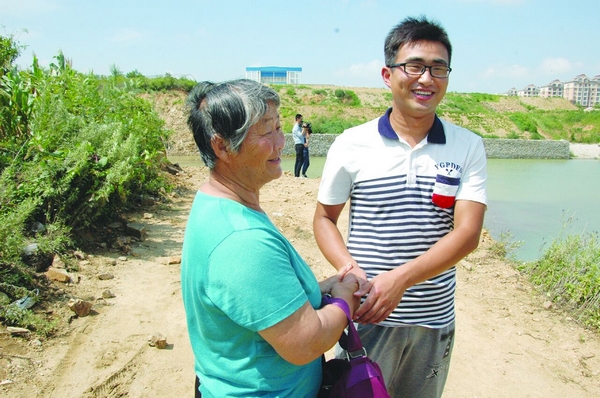 鄭東輝救上小女孩后,發(fā)現(xiàn)水里的老人好像已經沒了知覺,于是趕忙再次跳進水里,費盡力氣把老人往岸邊拖。但是老人身體非常沉,將她拖到淺水區(qū)之后,他實在拖不動了。看到老人已經沒有了呼吸,他決定馬上搶救。此時,他想到了自己曾經看過心臟復蘇施救的方法,便一個勁按壓老太太的胸腹,沒想到奇跡出現(xiàn)了,幾下之后老人就張嘴呼吸了。