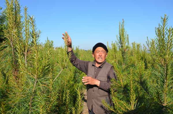 看到茁壯成長的紅松樹苗,宋忠華喜出望外、信心倍增,于是有了擴大種植規(guī)模的想法,2006年從村里租了10畝土地播撒了120斤種子。規(guī)模擴大,就意味著花費增多,為了讓10畝地都能育出新苗,成長為茂密的松林,他把多年的積蓄都投資在紅松的種植上,這還不說,兒子每年送給的1萬多元養(yǎng)老費也全部貼到紅松種植中。如今,他用于紅松種植的費用累計達12萬元。規(guī)模擴大,就意味著忙累。沒錢雇人干活,育種、澆水、施肥、鋤草等所有的活都是宋忠華和妻子干。夏天,老兩口頂著烈日、冒著酷暑跪在紅松樹苗中扒草,一跪就是一天,累得身子都不聽使喚。但看到滿目翠綠的樹苗時,老兩口疲勞頓消,總是把苦累埋藏在心里,笑容寫在臉上。