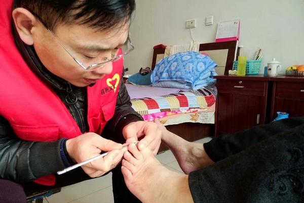 陳紅昌還清楚地記得第一次去給老人免費修腳,是在奎聚街道辛一敬老院。他拿著工具進門后,一聽是免費服務,老人們高興得不得了,個個像小孩子一樣,手舞足蹈,排好隊、脫下鞋、坐端正,安靜地等著。大多數老人的指甲大而厚,腳上的老繭硬又多,有人肯幫他們清理清理,別提多樂意了。“而且小陳從不嫌棄老人,還跟老人聊家常,幫他們消除寂寞,因此每周,時間未到,老人們就使勁叨念小陳,盼著他來。”敬老院部門負責人張大姐說。