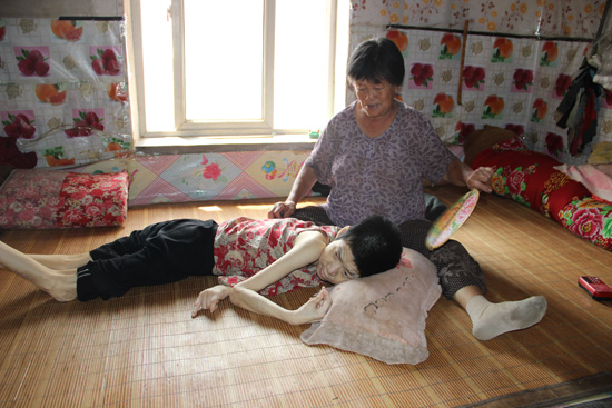 每天天不亮,趙桂蘭會起床,精心給女兒準(zhǔn)備早飯,等女兒睡醒后,伺候她穿衣喂食,抱她方便后,便坐在女兒床頭,陪她聊天解乏,每隔一會就要為她換尿布。趁著女兒睡著,她還要涮洗尿布,抽空干點家務(wù)。即使是晚上睡覺,她也不能安眠,每夜總要起夜幾次,看女兒是否要上廁所,被子有沒有蓋好。趙桂蘭屋外面對是生活的重擔(dān),屋里面對的是她癱瘓的女兒。每每看到瘦得皮包骨頭的女兒,她都忍不住心酸:“俺也想讓閨女出去曬曬太陽啊,可俺抱不動也背不動了。”趙桂蘭很心疼女兒,但卻心有余而力不足。