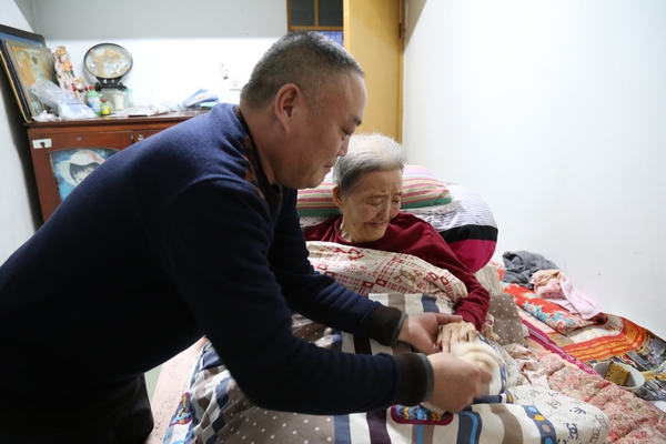 張新軍的愛人經(jīng)營(yíng)一家小門市,自從老人病后,她就將生活的重心放在照顧老人身上。談起照顧老人,她說,“娘的養(yǎng)育恩情比天大,有機(jī)會(huì)盡孝是福氣!”