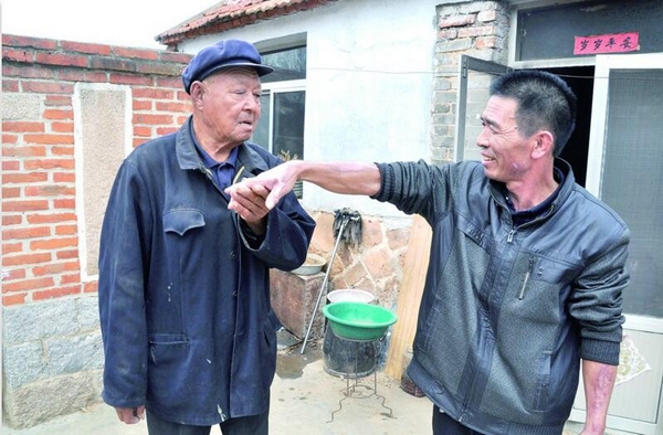 葛寶雙的兒子迅速趕到現(xiàn)場(chǎng),將父親送到醫(yī)院救治。葛寶雙被診斷為中度燒傷,燒傷面積為13%。“我前后住了26天院,每?jī)商鞊Q一次藥,每次換藥都要去掉爛皮,撕心裂肺地疼。”葛寶雙說,住院期間他了解到,殷式松跟老伴也因?yàn)槭軅≡毫耍绕涫且笫剿桑驗(yàn)閭麆?shì)嚴(yán)重,被送往青島一家醫(yī)院救治,醫(yī)療費(fèi)花了4萬多。“殷大叔住院期間,還特意安排兒子跟女兒來看我,這讓我很感動(dòng)。”葛寶雙說,他住院的醫(yī)療費(fèi),個(gè)人承擔(dān)部分不到一萬塊錢,完全能夠承擔(dān)。“救人都是應(yīng)該的,無需回報(bào)。殷大叔家的條件不是很好,又?jǐn)偵线@樣的事兒,我不希望他再因?yàn)槲沂軅氖滦膽牙⒕巍?nbsp;