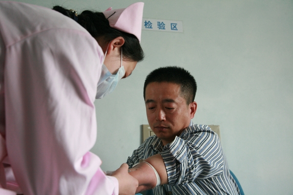 王志國在血站抽血