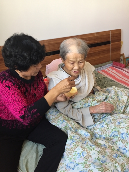 23年的臥床對一個高齡老人來說也是一種精神煎熬。為了打消老人的顧慮,鼓勵婆婆積極的面對生活,隋媛珍閑下來就會坐在老人床邊陪她說說話,聊聊天,讓老人好好地活著,看孫子結婚,抱重孫子,用質樸的話語給老人精神支柱,心存生活的希望。
