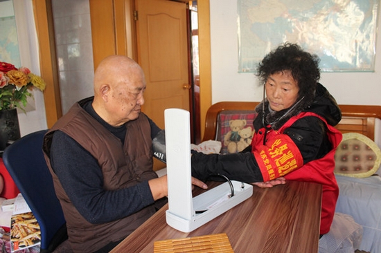 黃月菊家住在勝利油田勝東社區青勝小區,小區里孤寡、獨居、高齡老人比較多。對于行動不便的老人而言,兒女不在身邊,又缺乏對疾病的認知,自己去醫院看病真的是件難事。了解到這些老人的困難后,黃月菊自費購買了小藥箱,備好常用的醫藥工具,開始了定期為轄區老人量血壓、測體溫、檢查身體健康情況、指導用藥的助人為樂之路。2009年,在瑞達物業服務公司瑞東黨員服務社的幫助和促成下,黃月菊又把幾名退休醫生組織在一起,成立了“銀齡愛心醫療隊”,定期在小區開展醫療咨詢、健康知識講座、志愿服務等活動,為小區居民特別是老人提供無償的醫療服務,還經常購買有關書籍,結合自己多年的臨床實踐經驗,精心撰寫醫藥常識,用通俗易懂的語言為居民宣傳普及高血壓、心腦血管病及動脈硬化等常見慢性病的防治常識,增強了轄區老年居民自我保健、防病抗病的能力,并為老人們建起了健康檔案,把醫療服務送進家門。83歲高齡的趙鳳英老人就是受益者之一。