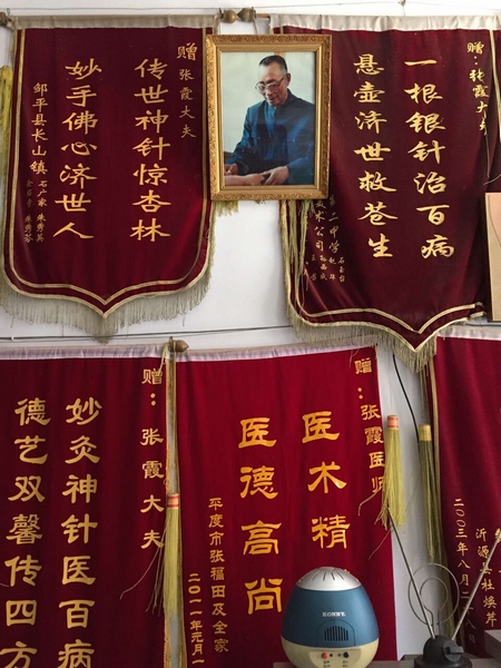 張霞和父親張士貴獲得無數病人家屬贈與的錦旗