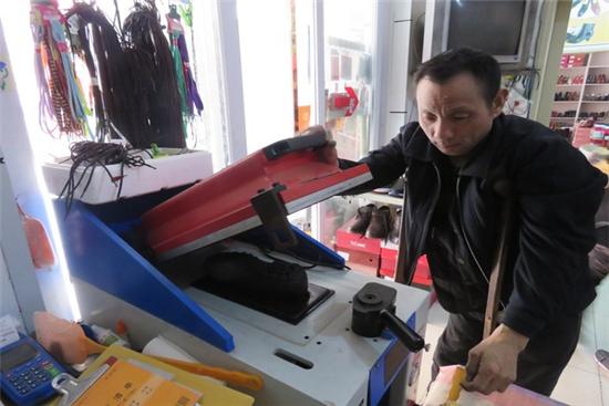 韓立奎是寧陽縣堽城鎮劉伶村人,3歲時因一次醫療事故導致下肢癱瘓。初中畢業后,獨立要強的韓立奎選擇了修鞋這個行當,“當時別人勸我這個活兒又臟又累,但我尋思,先得自力更生才能報答含辛茹苦把我養大的父母”。
