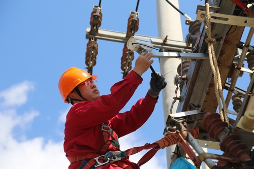 馬廣俊正在電桿上檢查遠程操作系統的部件