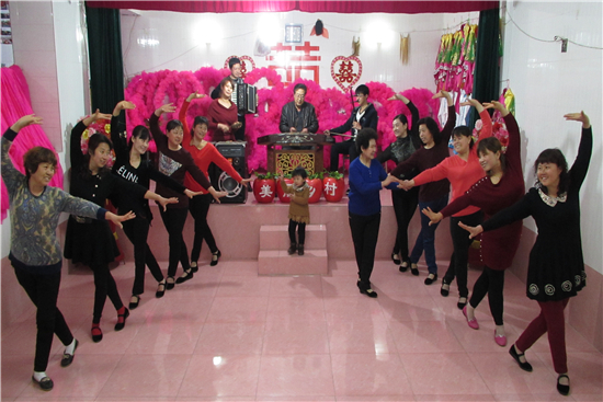 張蓮和丈夫都是戲劇迷,二人勤儉持家、勤勞致富。直到2000年,有錢了的張玉蓮發現周圍群眾的業余生活不是看電視就是打牌,就產生了組建文藝團,開展文藝活動的想法。當時正值婦聯倡導“家庭文化建設”,她就把流落在鄉間的文藝愛好者聚集在一起,短時間內就組織了40多人的文藝骨干,成立了巾幗文明隊。為了給大家提供良好的活動場所和演出舞臺,她自籌資金修建200平米的活動室做為春秋兩季的活動場所,然后又裝修240平米的地下室做為冬季的活動場所。15年來,她把愛好做為繁榮農村文化生活的一項事業來經營,自掏腰包累計花費20萬元用于文藝隊的場地建設、服裝、道具、音響、燈光的購置等。現在呢,從人員規模上,不僅吸引了本村的人員參加,周圍十里八村人都蜂擁而至;在節目編排上,她根據現今農村形勢,想題材,編動作,常常為一個細節不理想夜不能寐,有時都能半夜爬起來實踐演練;有時為了一個道具,也是費盡心思,挖空心思在想怎樣做到既省錢又達到效果。