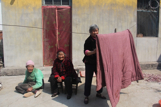 韓邦英老人幫助孫姚氏娘倆曬被子