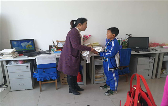 2016年下半年,班上一個性格孤僻的孩子小杰,軍訓時老是做不好轉體動作。正當高鑫了解他是不是身體不舒服的時候,才發現小杰的鞋底原來已經磨透了,腳底血肉模糊,不能轉......查看之后,高鑫馬上把小杰叫出了隊伍,帶到了辦公室,當看到孩子那雙很不合腳的被磨透了的大鞋的時候,心疼得禁不住鼻子直發酸。經了解得知,小杰父母離異,母親帶著他改嫁他人,現在跟繼父的關系不太好,家庭也十分貧困。高鑫二話沒說便給孩子買了雙新鞋,同時發動朋友圈的愛心人士為孩子捐款捐物。后來又跟孩子的繼父取得聯系,就孩子的成長和教育問題進行了認真的溝通。在高鑫的幫助下,孤僻的小杰露出了久違的笑容,在班上有了越來越多的朋友,也終于敢開口大聲說話。高鑫的這一事跡,還被2016年12月29日的乳山時訊以《一張照片引發的愛心故事》進行報道。