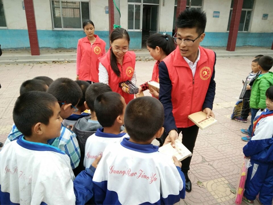 他熱心公益,服務群眾,奉獻社會,五年的時間里,堅持做志愿服務,教盲童彈吉他,關注留守兒童,參與精準扶貧……哪里需要志愿者,哪里就有他的身影。一天、兩天并不難,難的是持之以恒。他說“世界上還有這么多不幸的人需要我們幫助,星星之火可以燎原,我不追求安逸,就想力所能及地幫助別人。”