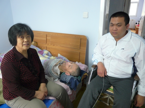 安為香把不省人事的丈夫和癱瘓的兒子接回家中。為了照顧丈夫和兒子,沒有任何醫療基礎的她,一點點摸索學習護理工作。每天凌晨5點,不用鬧鐘提醒,安為香習慣性地一骨碌爬出被窩,開始一天的忙碌,清洗、喂水、做飯、喂飯,按摩……繁雜又有條不紊。白天,丈夫不能常躺在床上,開始時,她找人幫忙抬丈夫下床,后來,瘦弱的她被鍛煉得有了驚人的力氣,她獨自便能背起兩倍于她體重的丈夫,到院子里曬太陽。買不起1萬多元的站床,她就自己在墻上捆上繩子、布條,喂他吃飯,幫他活動。到了晚上,她怕丈夫抽筋,每每爬起來為丈夫揉搓肌肉,導尿、翻身。癱臥在床最怕的是長瘡,身體僵硬最可怕的是便秘。安為香開始時只能用開塞露等藥物治療,時間長了連多家醫院都無法治療。于是她戴一次性手套,手伸進肛門為他摳……