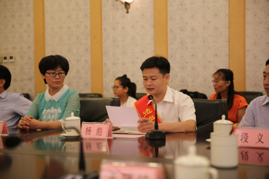 2016年7月6日,楊彪在捐獻造血干細胞歡送會上發言。