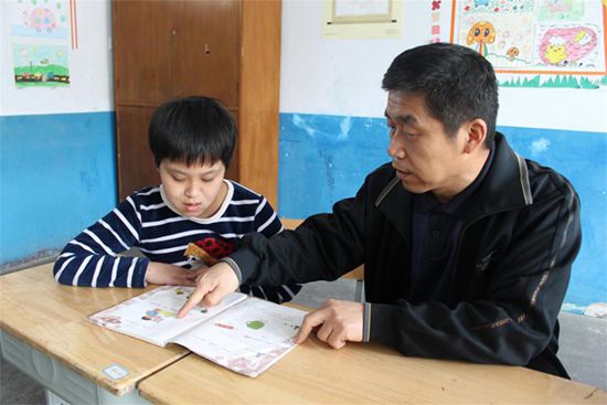 生活教育,他成為學(xué)生心中的好“爸爸”。工作上的劉老師就像一塊磚,哪里需要那里搬。近年來的招生以智障孩子為主,劉老師又擔(dān)任了一年級(jí)智障班的生活課教學(xué)。班上12名孩子,有的先天愚型,有的腦癱,還有的多重障礙。這些孩子,年齡小,自理能力差,有穿反鞋子、系錯(cuò)紐扣的,還有大小便不能自理的,劉老師的教學(xué)遇到常人想象不到的困難。早上,他會(huì)最早來學(xué)校幫班里的每個(gè)孩子洗手、洗臉、刷牙、疊被子;課堂上,他會(huì)手把手地,十遍、百遍的教孩子的自理能力。他經(jīng)常把自己孩子的衣服拿來給貧困學(xué)生穿上。這些年,只是為不小心磕磕碰碰的學(xué)生用的紫藥水,劉老師就自己掏錢買了幾十瓶。在劉老師的抽屜里一直存放著一個(gè)個(gè)顏色不同的線轱轆,上面插著縫衣針,這是他親手為孩子們縫補(bǔ)衣服、鞋子、書包等用的,縫衣針和線轱轆也不知道換了多少個(gè)。劉老師關(guān)愛學(xué)生就像關(guān)愛自己的孩子一樣。某某強(qiáng)學(xué)生是一個(gè)多重殘疾的孩子,父母輕度智力障礙,全家靠70多歲的爺爺操持生計(jì)。去年冬天,劉老師見孩子的鞋子破得露出了腳趾,沒穿襪子的兩只小腳丫凍得通紅。他什么也沒說就到商場(chǎng)買了雙新棉鞋給他穿上。經(jīng)常遇到某某強(qiáng)同學(xué)的爺爺不能到校接孩子,劉老師就自己買車票送學(xué)生回家。坐車要走一百多里路,從車站下車還要步行十幾里的山路才能到家。在送學(xué)生回家的路上,劉老師的雙手被荊棘劃破了不知多少道血口,在上嶺和下嶺的時(shí)候也不知滑倒過多少次。一年、兩年、三年……,這樣的付出和堅(jiān)持,孩子們有了驚人的變化:銘銘會(huì)自己洗衣服了,偉偉能洗刷碗筷了……,最終實(shí)至名歸,2016年9月,劉老師被縣教育局評(píng)為“優(yōu)秀教師爸爸”。