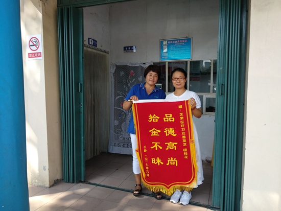 2017年9月9日晚6點半,市民孫女士在南山公園如廁將包遺失在公廁內的掛鉤上,內有三千多元現金、一部手機、多張銀行卡及各種證件,孫女士驅車離開20多分鐘后,才發現自己包忘拿了,她急忙驅車往回走,一路上一直擔心如廁的人那么多,萬一被誰順手拿走了。令孫女士沒想到的是,在她離開不久,姜英芝就發現了遺失的包。姜英芝根據手機上顯示的未接電話聯系到孫女士的親屬。晚上七點半,孫女士匆忙來到公廁,看到包里物品一樣沒少,當即拿出現金表示感謝,被姜英芝婉言拒絕了。面對著市民的盛贊,姜英芝說,如果當時沒聯系上失主,就準備去銀行找聯系方式,一定要把錢包還給她,別人丟了東西肯定著急,能幫幫就幫幫吧,簡短樸實的話語里滲透著這位普通環衛工人的大愛和無私。
